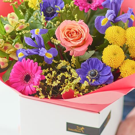 A vibrant spring bouquet made and delivered by a local florist.